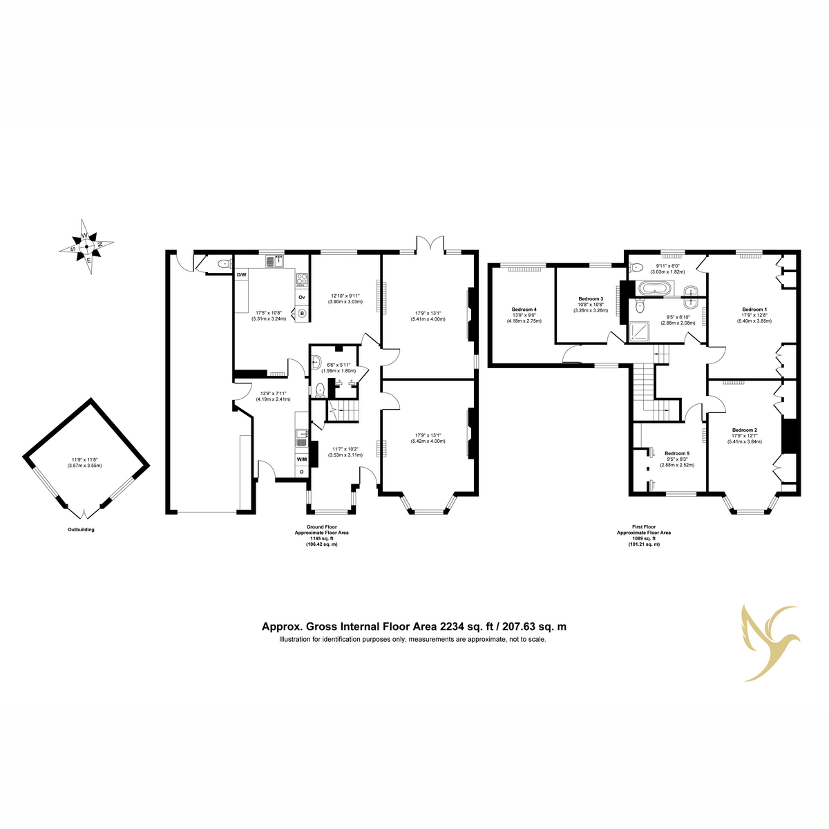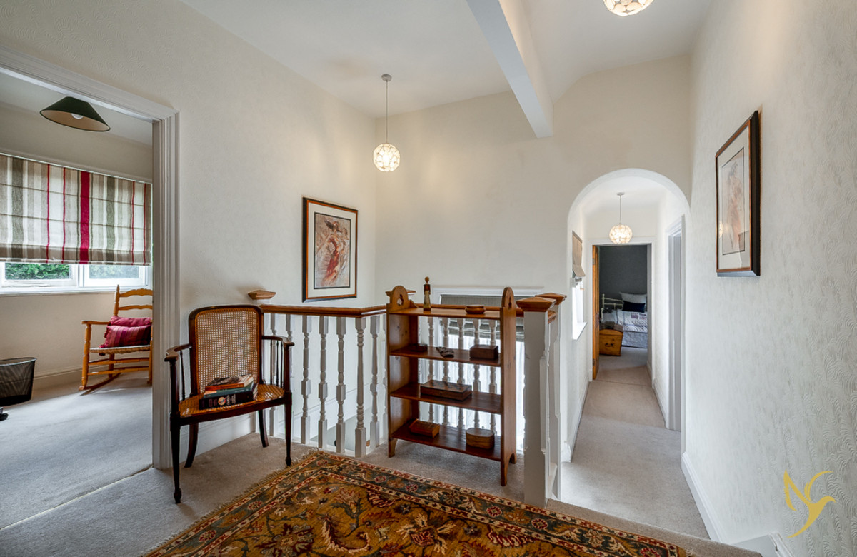 Reception Hall and secondary entrance. 5 double bedrooms, principal-ensuite, bathroom, 3 receptions, Breakfast-kitchen, W.C., laundry room, substantial garaging, mutli-vehicle frontage, fabulous rear garden.