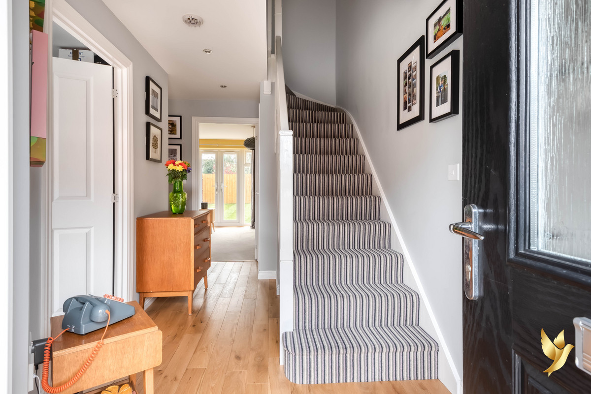 Situated in this prime village location the property occupies a super plot adjacent to the estate gardens giving a lovely feel of space and greenery literally on your doorstep. With large tandem driveway that has side access to the rear Garden that has been freshly laid to lawn and is a decent size for further landscaping should you wish to do so.