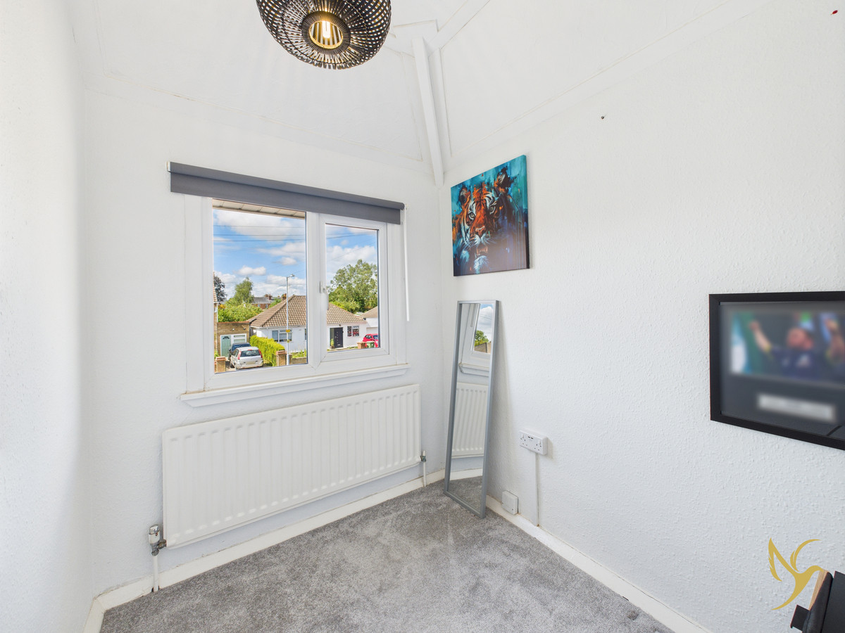 The welcoming hallway leads directly into a bright lounge, featuring a large bay window that floods the space with natural light and a central log burner the perfect spot for cosy evenings.