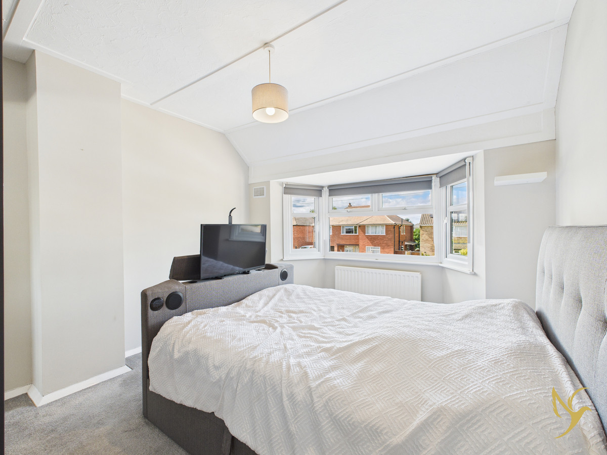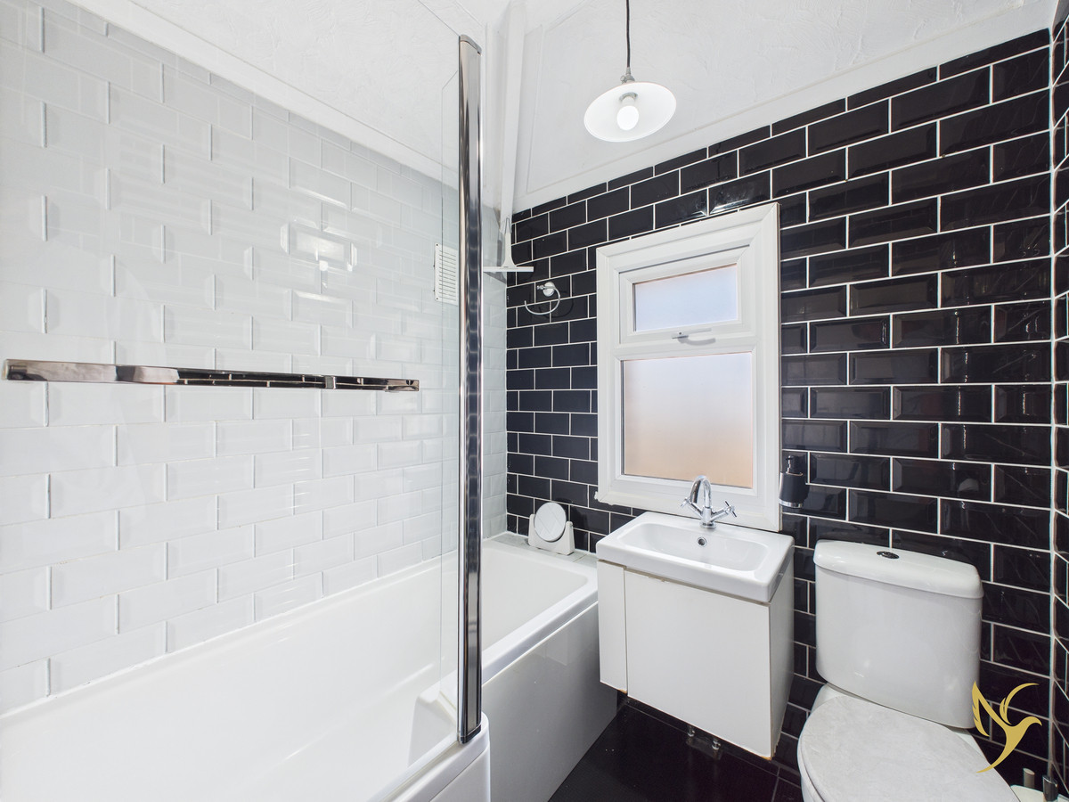 Upstairs, there are three bedrooms, two generous doubles and a well-proportioned single, ideal as a nursery, home office, or guest room. The family bathroom is neatly fitted with a modern white suite.