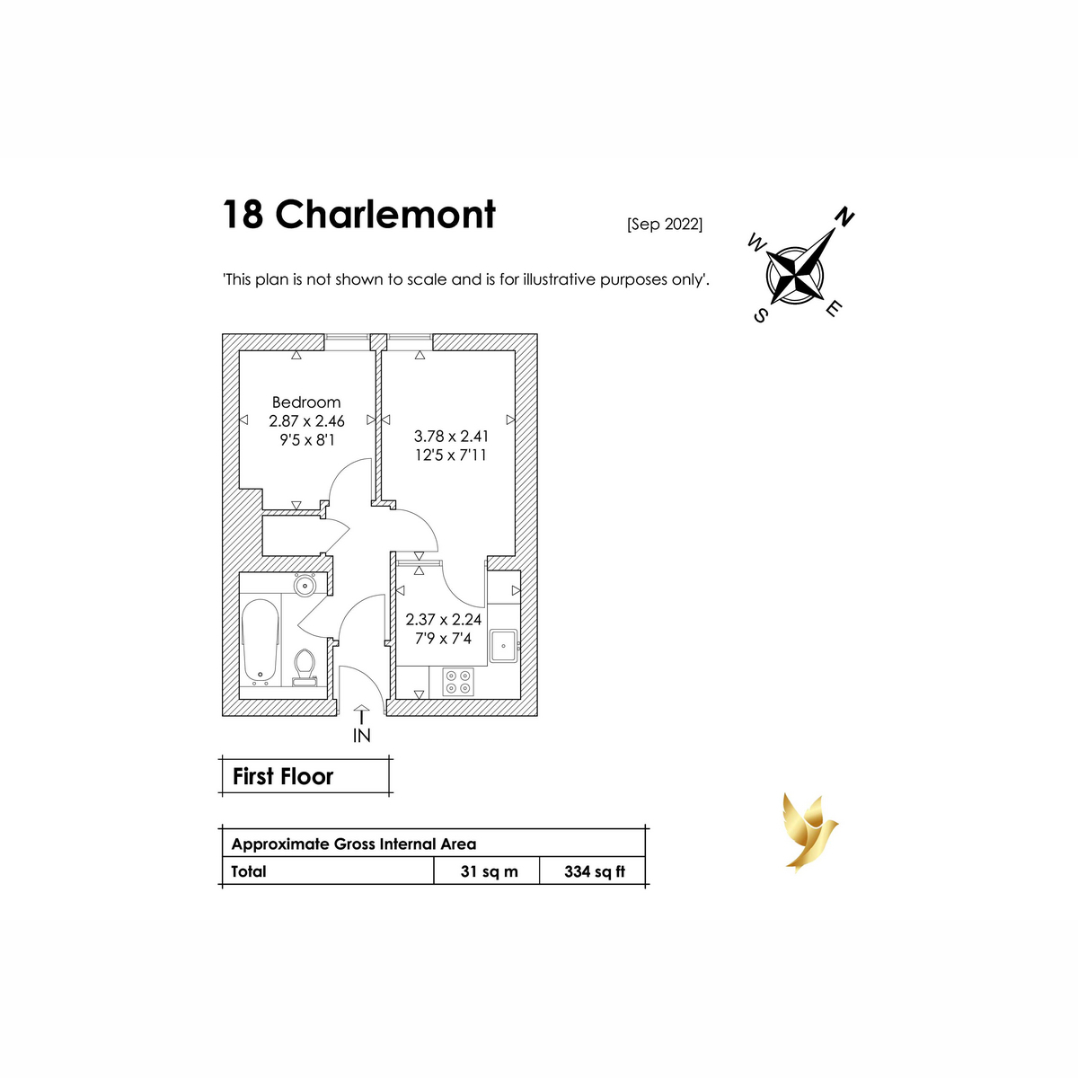 The elegant entrance steps and hall give access to a handful of apartments, centered around a beautifully presented staircase. On the first floor and beyond the private entrance door is a central hallway, a pretty sitting room and bedroom both with far reaching views together with a well equipped kitchen and Bathroom. Above, and of equal proportions as the first floor accommodation is a huge attic space possibly offering the opportunity to expand and develop subject to planning and other conditions.