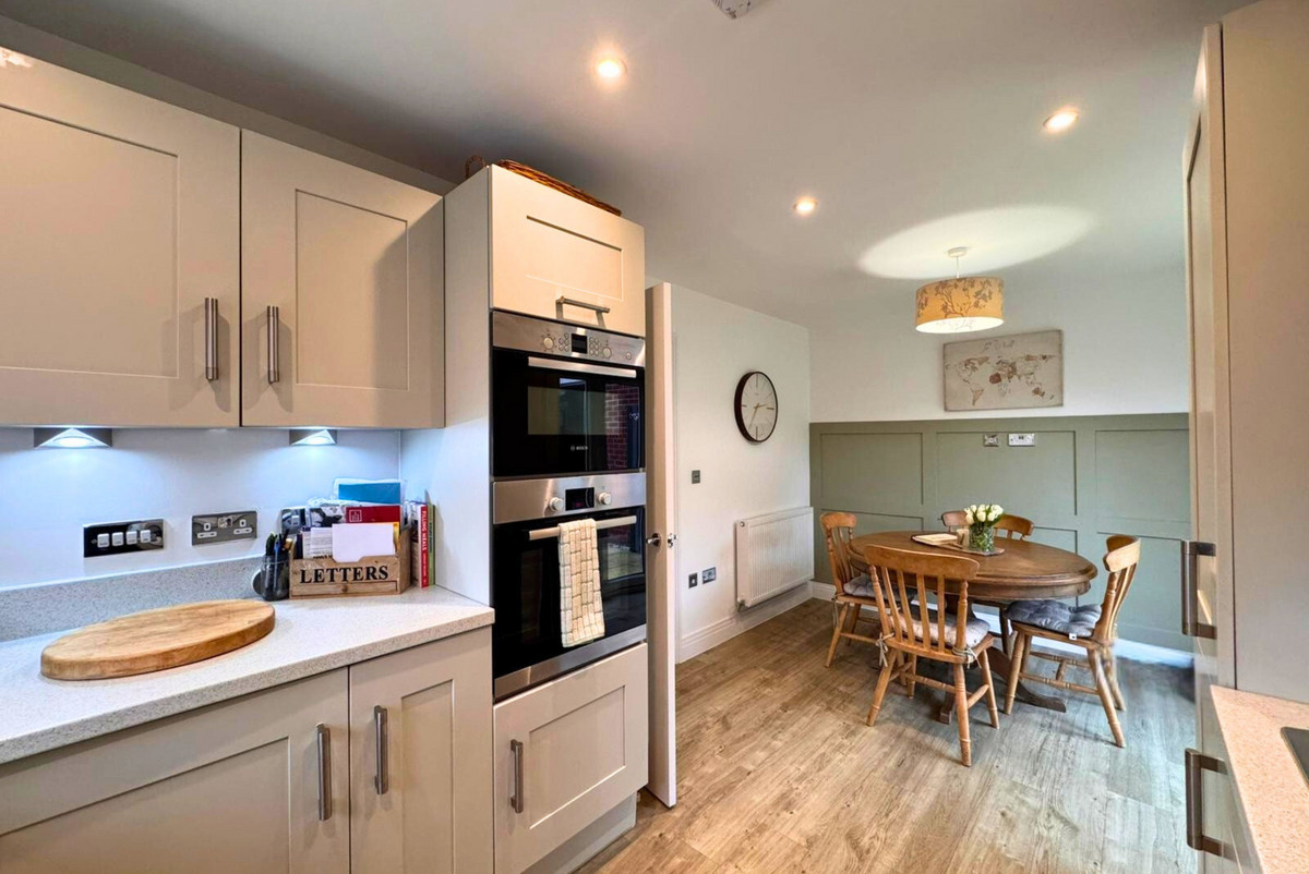 The first floor offers three double bedrooms, each providing comfortable proportions and flexibility for family life. The main bedroom benefits from its own ensuite shower room, while the other two rooms share a modern family bathroom.