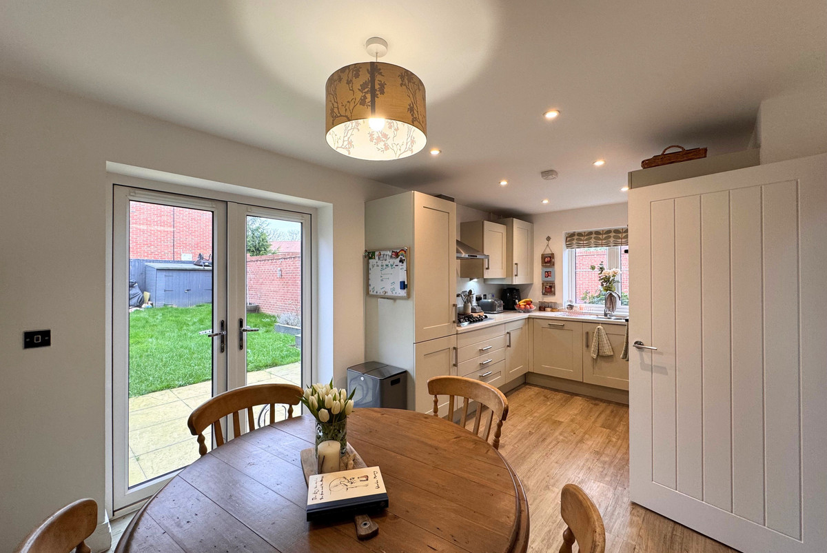 To the rear, you’ll find a stylish kitchen/diner that’s truly the heart of this home. With plenty of space for a family dining table and French doors opening out to the garden, it’s ideal for entertaining, everyday meals, and making memories. This floor is completed with a ground floor WC.