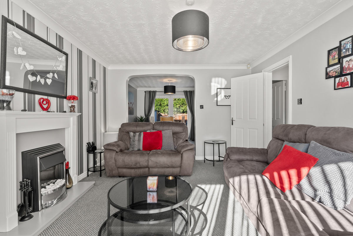 The home enjoys a sizeable enclosed rear garden, perfect for children, pets, and outdoor entertaining. To the front, the large driveway provides ample off-road parking alongside the garage.
