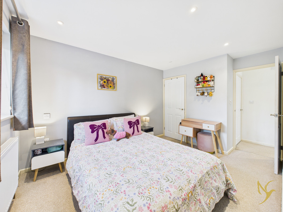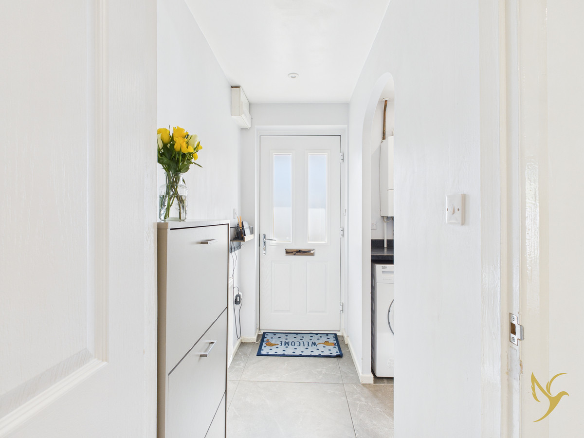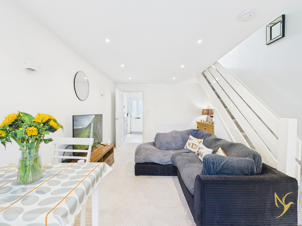 Step inside via the pathway into a welcoming hallway. To the left, you’ll find a newly refreshed, light and bright kitchen. The good-sized lounge/diner offers a contemporary feel, with double doors opening onto the sunny courtyard to the rear, which also benefits from rear access and a verge area.