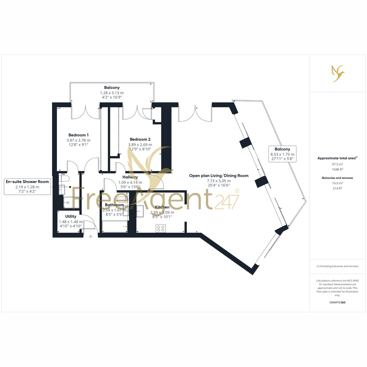 Contemporary penthouse-style flat on the first floor, spanning 1,000 sq ft+, with a premium finish throughout.