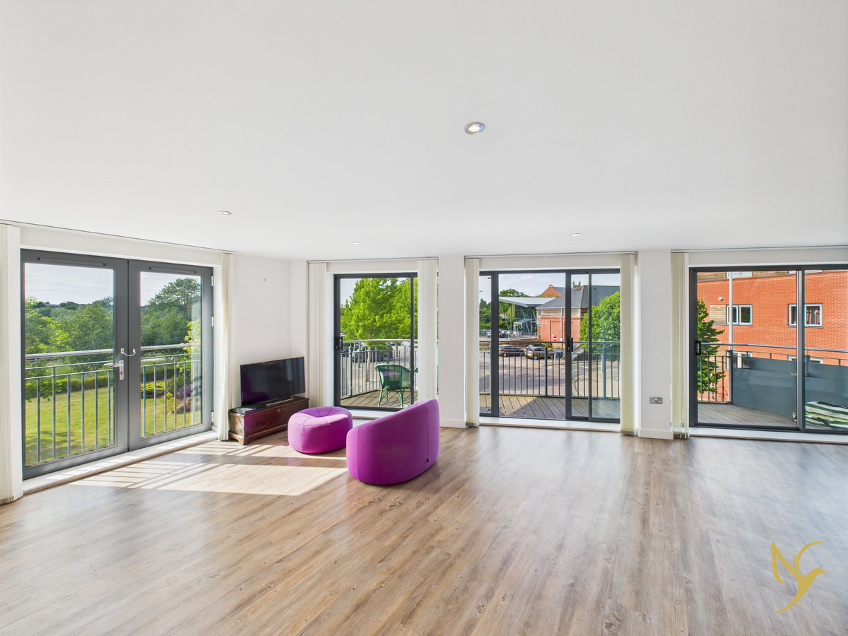 A stunning premium 1000sqft+ first floor apartment in the sought-after Diglis area combines spacious modern comfort, secure living and riverside charm — just a short walk from Worcester City Centre. With a stylish open plan layout, two double bedrooms (one en-suite), one main bathroom, two private balconies (second balcony accessible from both double bedrooms), and secure allocated parking.