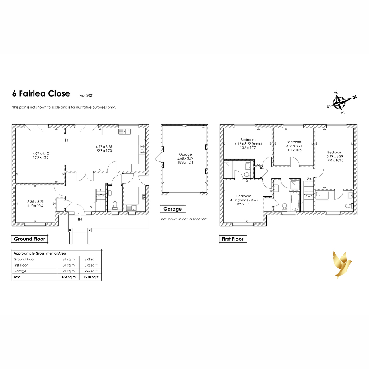Reception hall - Cloakroom - Utility - Kitchen/Breakfast room - Dining Area - Living room - Four bedrooms - 2 Ensuites - Family bathroom - Garage