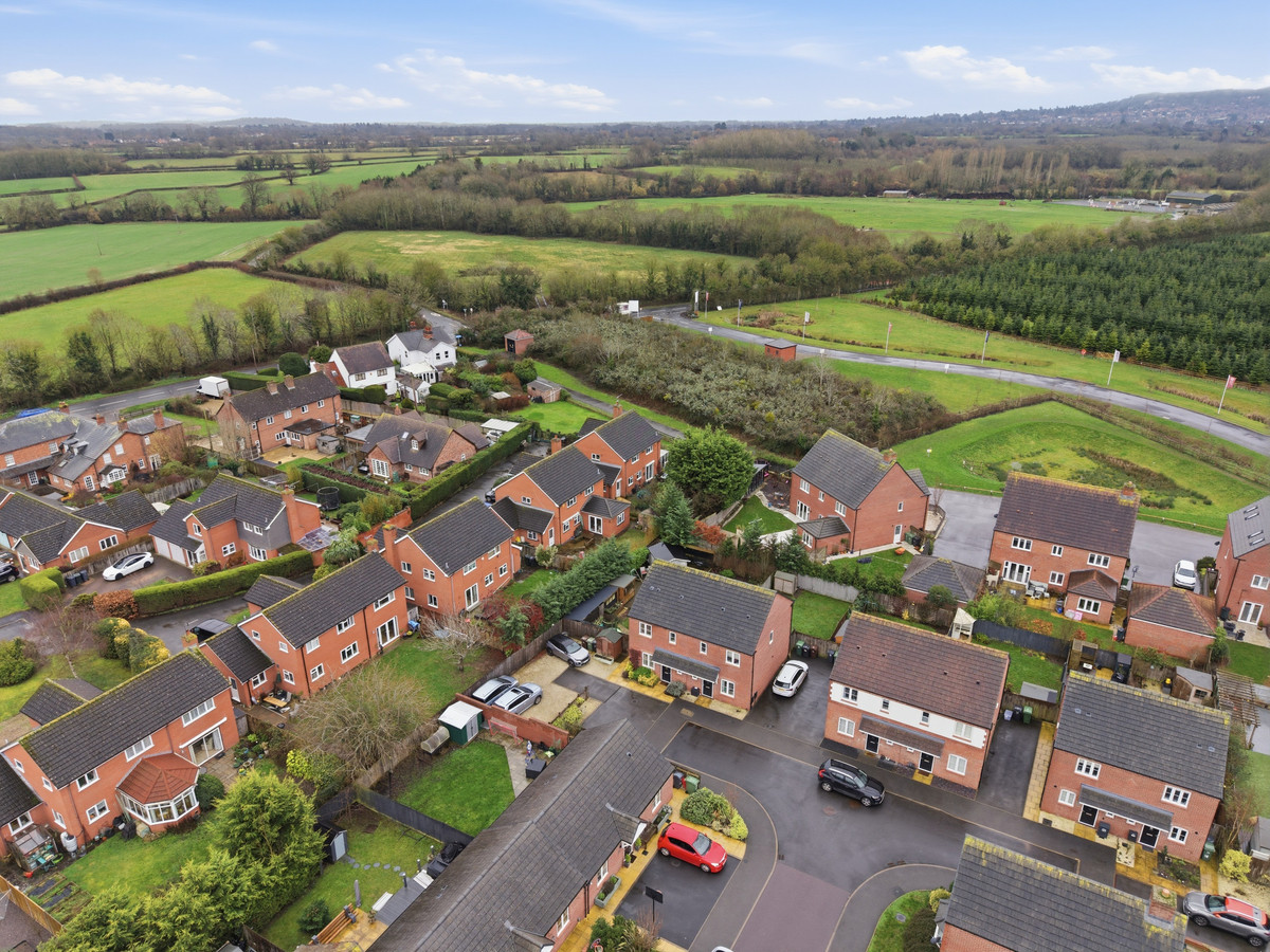 The home enjoys a corner-plot, tucked-away position in this highly successful development in the lovely village of Leigh Sinton, between Worcester and Malvern.