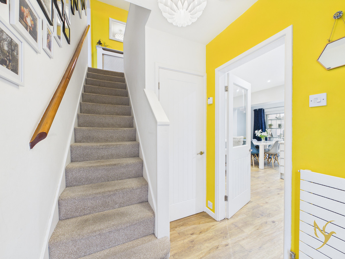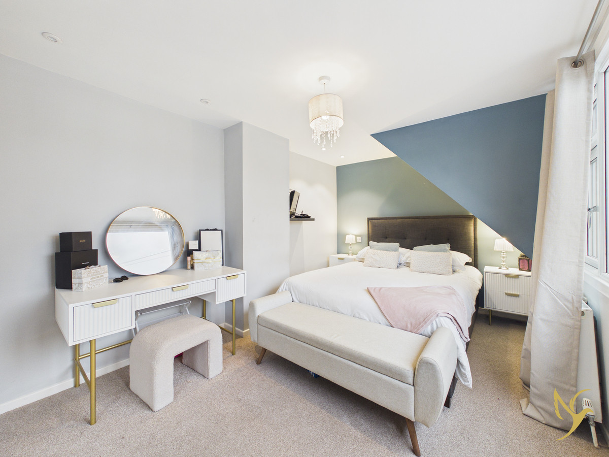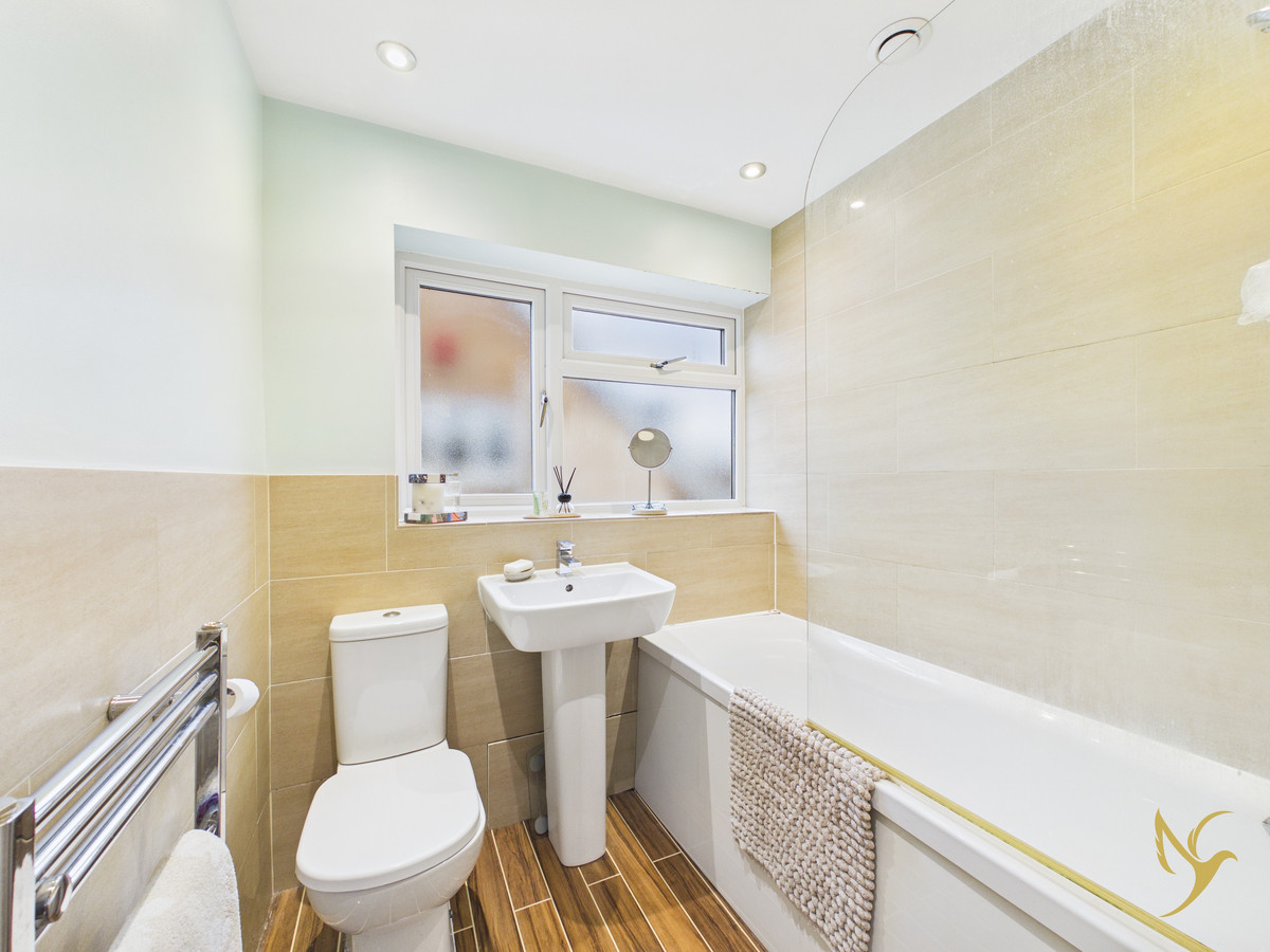 Upstairs, the attractive master bedroom enjoys pleasant views to the front of the property. Two further well-proportioned bedrooms and a modern family bathroom complete the first floor, creating a smooth and functional flow throughout the home.