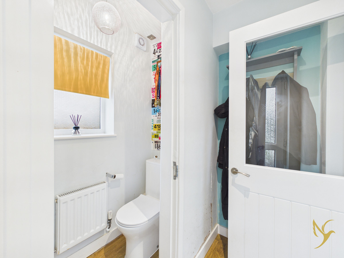 To the front of the property, the light and airy living room provides a wonderful space to unwind. The ground floor is further complemented by a convenient downstairs WC off rear lobby area.