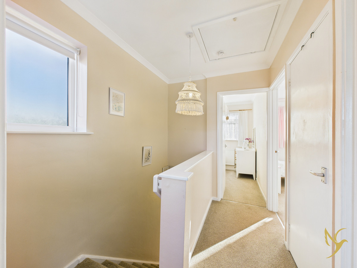 Upstairs, the accommodation continues to impress. A modern shower room sits at the top of the stairs and is presented in excellent condition, meaning there is no immediate need for renovation. There are two well-proportioned double bedrooms, both offering space for fitted wardrobes — with existing fitted wardrobes already in place in both rooms. The third bedroom is a single room, ideal as a nursery, study, or home office.