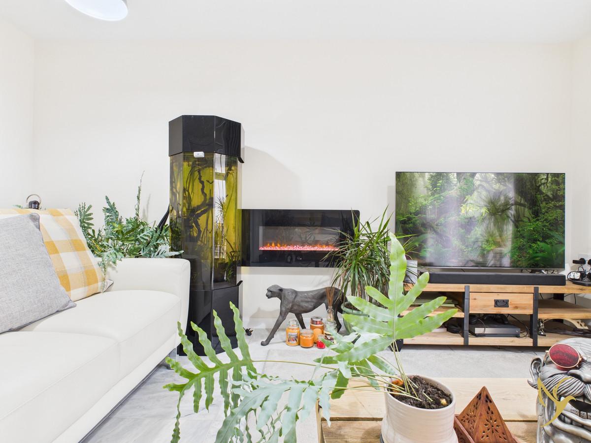 With parking spaces to the front enter in to the reception hall which has cloakroom and stairs to the right. Smart kitchen to the frontage and large Living Area to the rear with doors on to the landscaped garden.